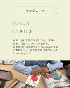 販売に加えて、オリジナルリングのーと作りのワークショップも行います。